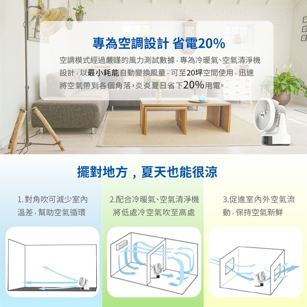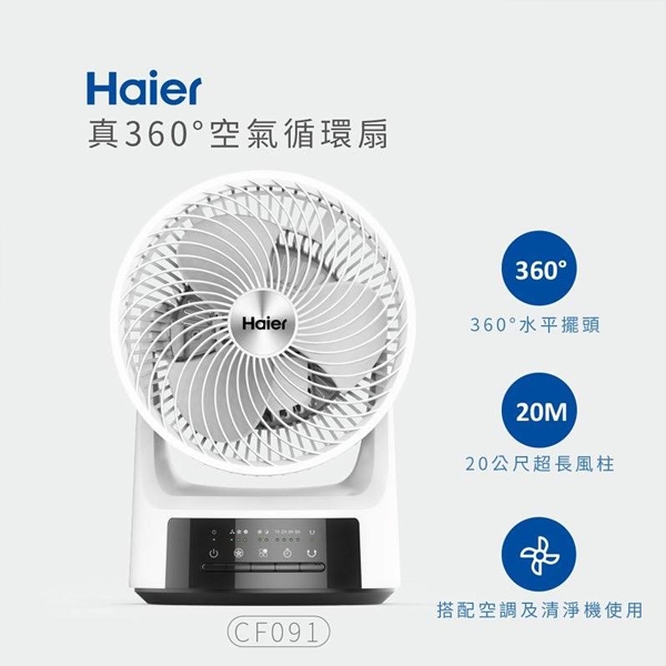 Haier 海爾 風力集中空氣柱 9吋 360度旋轉 對流氣流循環扇 真正360度可旋轉,3D立體渦輪式出風 四段模式調整,可90度擺頭,送風無死角! 運用空氣力學方式,導入氣流循環, 中央具有最大可達20公尺空氣柱唷!! 搭配冷氣空調,讓空氣對流更好更省電! 搭配空氣清淨機,可加速空氣過濾效果喔! 靜音舒適,外型簡潔優雅,小巧好收不占位 快來試試 Haier海爾 循環扇的威力吧!