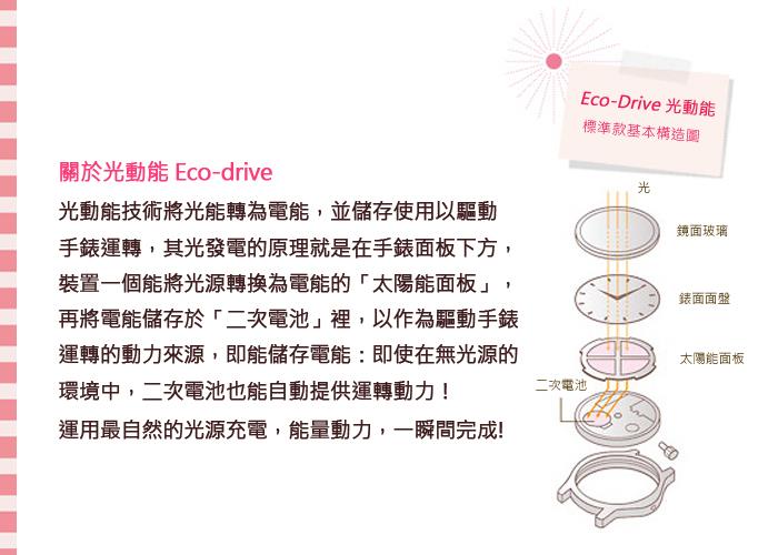商品規格 品牌 : CITIZEN星辰 型號 : FB1433-01P 使用族群 : 女錶 手錶特性 : 三針 錶帶材質 : 皮革錶帶 錶帶材質說明 : 小牛皮 特殊功能 : 24小時制, 計時, 日期顯示 錶殼材質 : 不鏽鋼 鏡面材質 : 藍寶石水晶鏡面 機芯類型 : 石英錶 動力來源 : 光動能, 太陽能 錶盤形狀 : 圓形 錶帶長度(cm) : 18 錶帶寬度(mm) : 19 手錶重量(g) : 68 鏡面直徑(mm) : 32 錶殼直徑(mm) : 37 手錶厚度(mm) : 10 錶帶顏色 : 棕色系 錶框顏色 : 玫瑰金色系 錶盤顏色 : 玫瑰金色系 指針顏色 : 玫瑰金色系 刻度顏色 : 玫瑰金色系 錶扣 : 按壓式摺疊錶扣 防水級別(米) : 生活日常防水50米 保固期 : 2年 配件 : 原廠精緻錶盒,原廠保證書 體驗說明 使用方法說明 參考說明書 注意事項 ☆ 錶背後均貼商品鑑賞標籤,若撕毀將不予退換貨唷!! ※商品圖檔顏色因電腦螢幕設定差異會略有不同,以實際商品顏色為準
