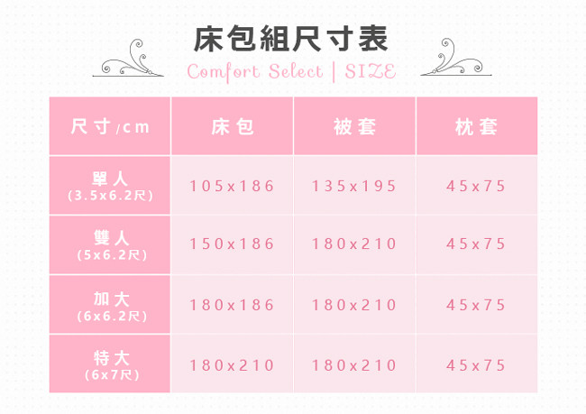商品規格 品牌 : HO KANG 種類 : 床包 類型 : 被套床包組 規格 : 單人 3.5尺 功能 : 透氣 流行元素 : 聯名款 主材質 : 混紡棉 材質說明 : 表布 : 高級混紡棉(35%棉65%纖維棉) 組合件數 : 3件組 枕套尺寸 : 薄枕套-75x45cm 被套尺寸 : 被套-135x195cm 床包尺寸 : 床包-105x186cm 產地 : 台灣 體驗說明 使用方法說明 無 注意事項 可水洗/可乾洗/不可烘乾/不可漂白 勿使用強力漂白清潔劑/浸泡時間請勿超過30分鐘/建議可放入大型洗衣袋後再清洗